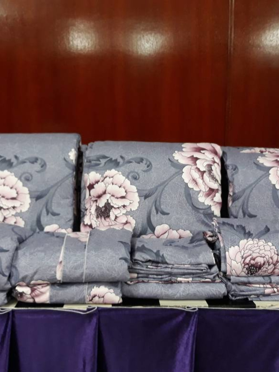 Cadar bergetah atas dan bawah, 4 sarung bantal dan 1 sarung bantal peluk dan sehelai comforter