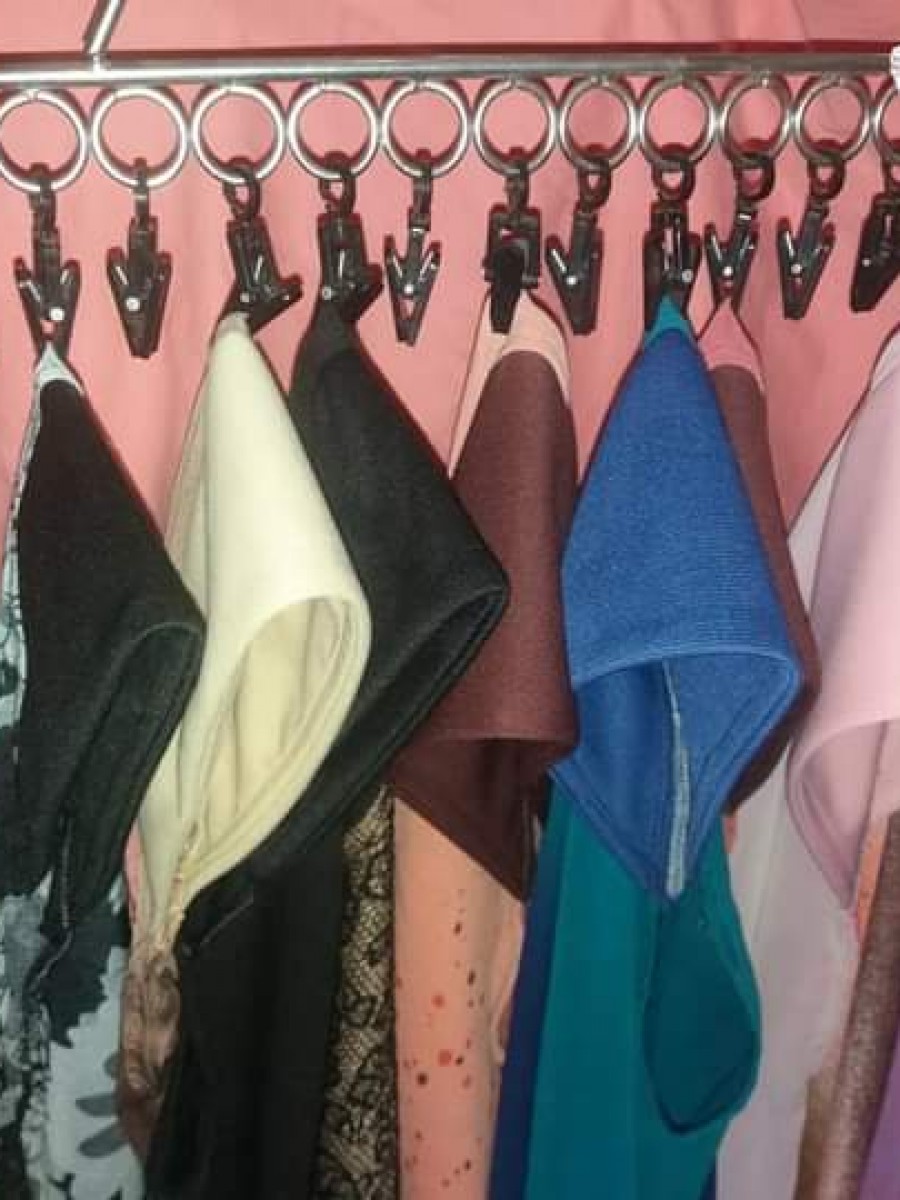 Khidmat tukar Awning Tudung- material awning Scuba. Jahit Shawl dan Bawal disediakan.