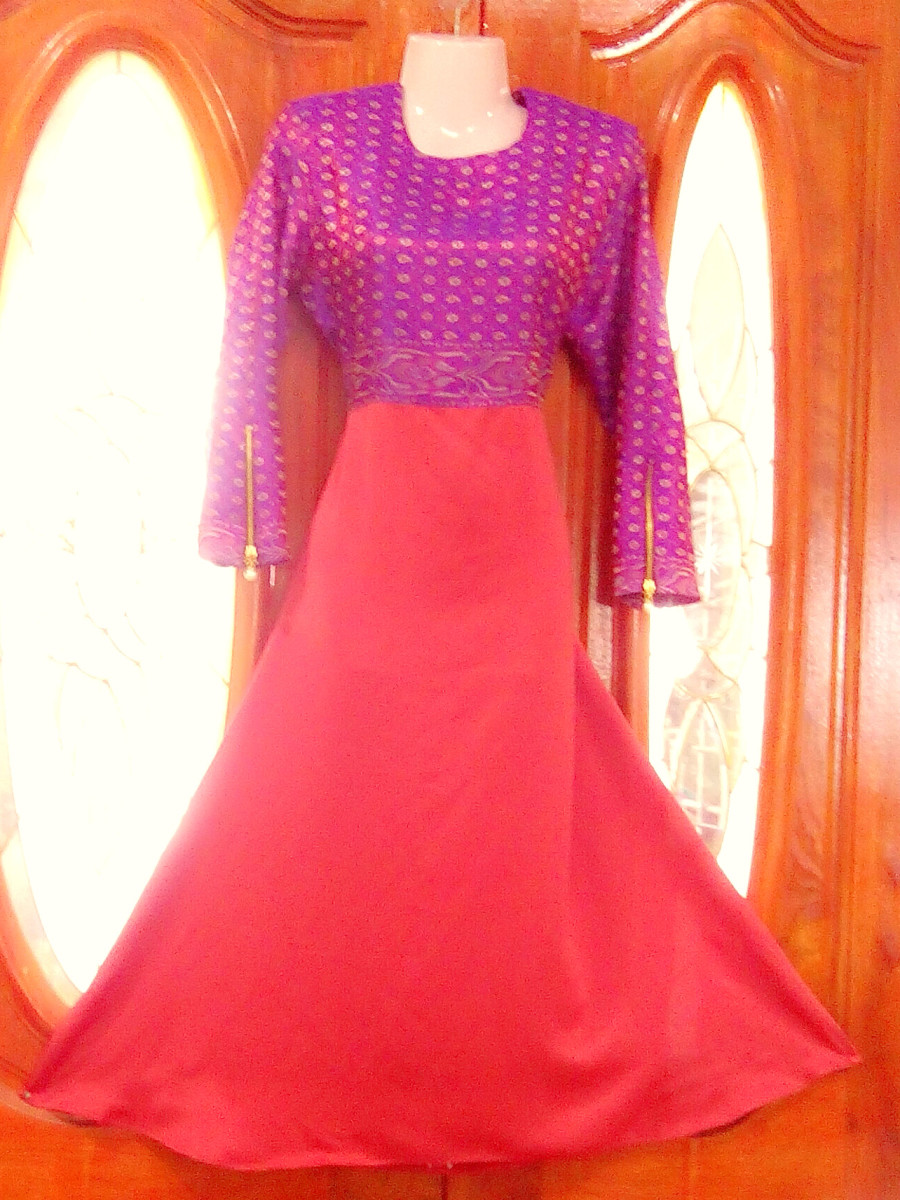 Jubah potongan dress dengan campuran fabrik, dengan fancy zip di tangan