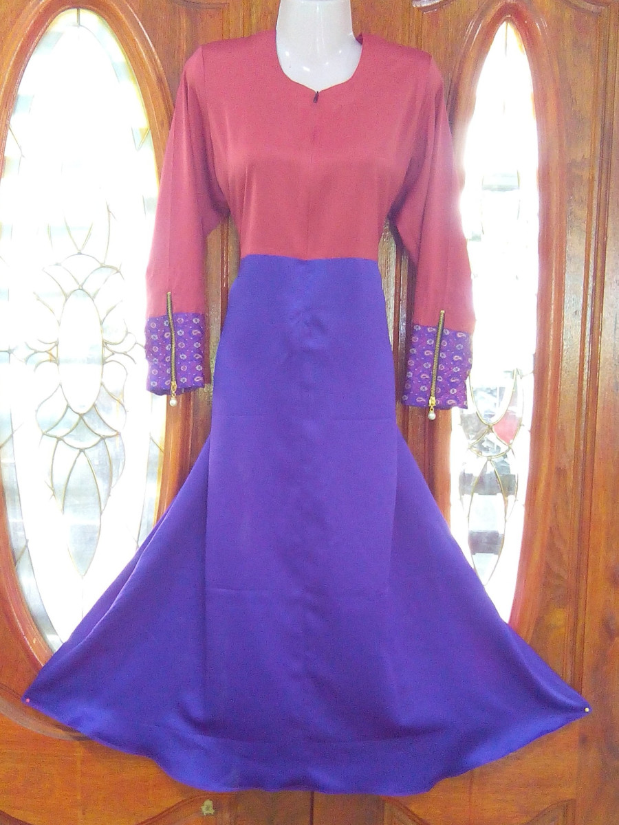 Jubah potongan dress dengan campuran fabrik, lengan fancy zip dan zip sembunyi untuk bahagian belakang badan