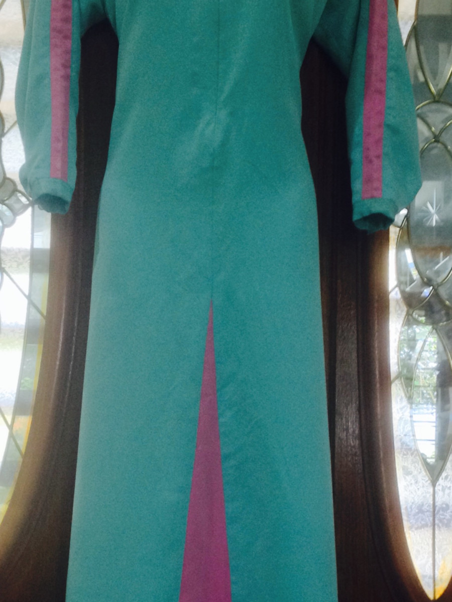 Jubah dengan campuran warna untuk bahagian bawah jubah serta lengan. Lengan kaf serta zip menyusu utk bhgian depan